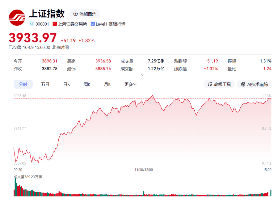 10月9日上午10点18分,上证指数站上3907.18点,这是自2015年8月以来,沪指首次突破3900点关口。 时隔十年,沪指再度突破3900点。这一消息在10月9日早间迅速传遍市场,投资者们的朋友圈被这一里程碑式的突破刷屏。 截至当天上午10点18分,上证指数报3905.52点,涨0.63%,深证成指与创业板指涨幅均超过1%。这一刻,市场已经等待了十年。 十年等待 开盘后不久,指数便突破3900点整数关口,截至发稿,沪指涨0.59%,报3905.52点。 其他指数方面,深证成指报13672.98点,涨1.08%,创业板指报3271.98点,涨1.04%,两市合计成交额超过1.13万亿元。 从板块来看,存储芯片、电解液、钴矿概念领涨,市场呈现结构性上涨特征。 沪指又一次逼近高位震荡箱体的上沿,不能有效突破的话,还会回落。 深指与创指在节前最后一个交易日冲高回落,未能达成金叉,日线顶背离的风险尚未真正化解。 沪指突破3900点的意义不同寻常。上一次沪指站在3900点上方,还是2015年8月的事情。 那一年,A股市场经历了大起大落,从疯牛到股灾,许多投资者的记忆都被刻上了深刻的烙印。 十年时间,中国资本市场经历 ...