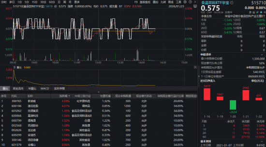 | | | | 分时 多目 1分 5分 15分 30分 60分 日 网 月 图字 | | 515710(金易放NET#体型 14:19 价 0.575 图数 0.000(0.00%) 转折 0.575 威交量 87 10/V 0.5749 | | | | | 2026/01/23 | | | ETF空审(0 | | 515710 | 19 盘粮盘后 露灯 九和 图线 工具 份 (2 | | | | | | | --- | --- | --- | --- | --- | --- | --- | --- | --- | --- | --- | --- | --- | --- | --- | --- | --- | --- | --- | --- | --- | --- | | | | | | | | | | | | | | 0.57 | | | 0.000 0.00% | | | | | | | | | | | | | | | | | | | | 净值五期 | 10 10 10 | 华盛中证相分拿出饮料产业主题(T | 20 20 7 8 | | | | | | | | | | | | | | | | | | | ...