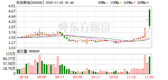 (文章来源:每日经济新闻) 每经AI快讯,11月20日,中央商场涨停走出3连板,3天累计涨幅达33.15%。 ...