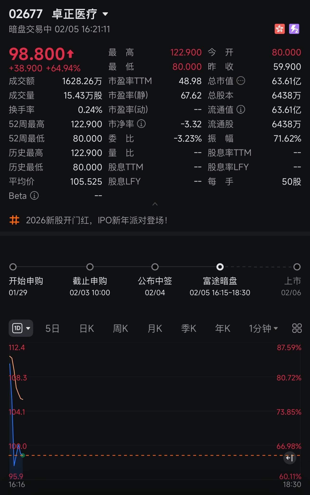 新股暗盘|卓正医疗暗盘收涨57.01% 一手赚逾1700港元