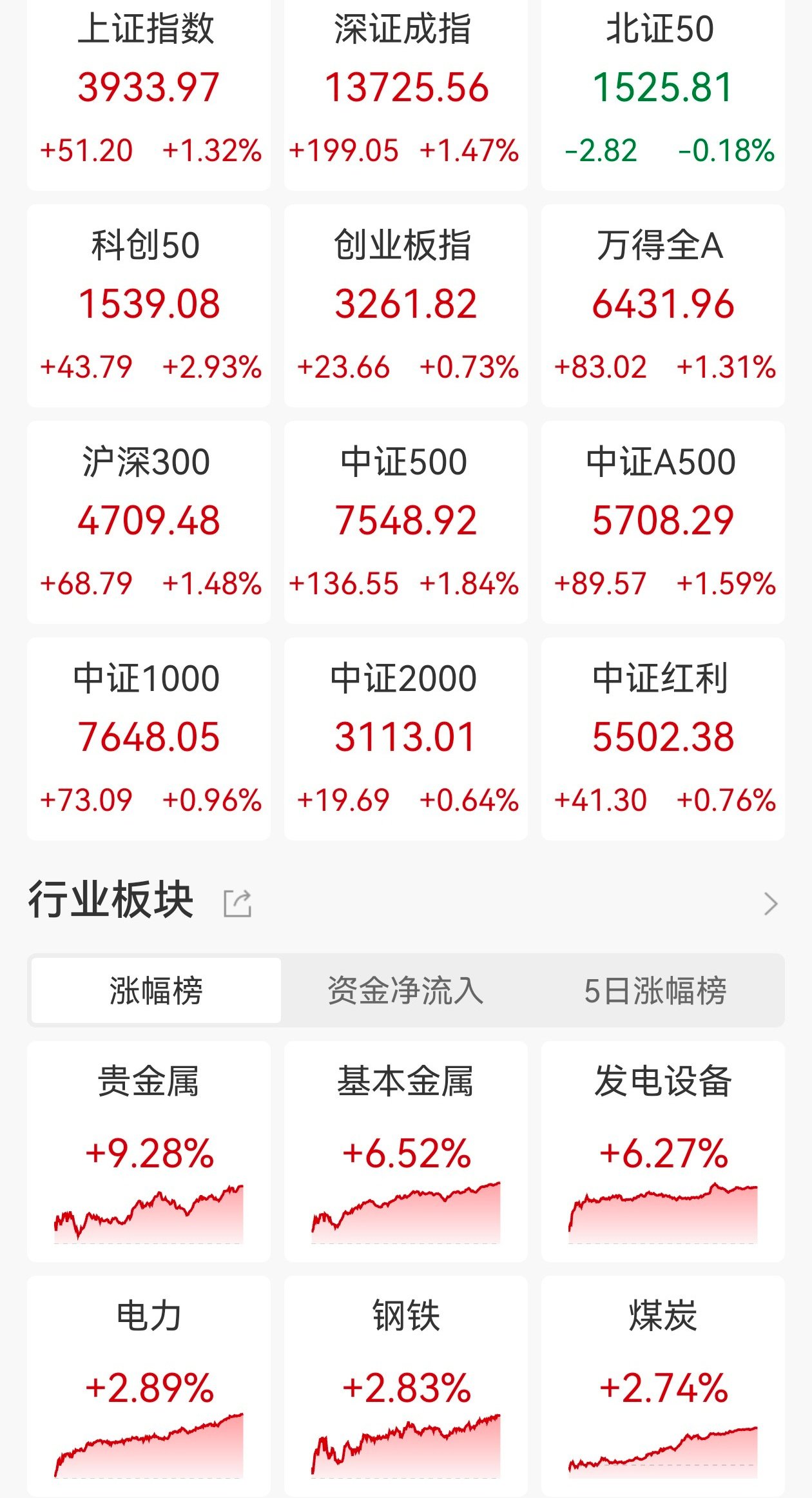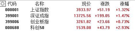 A股收评:放量上涨!沪指、深成指涨超1.3%,科创50指数涨近3%,黄金、可控核聚变及稀土板块走高