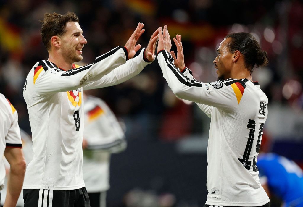 德国6比0横扫斯洛伐克 北京时间11月18日,世预赛欧洲区小组赛A组第6轮德国对阵斯洛伐克。上半场,基米希助攻沃尔特马德连场破门,格雷茨卡助攻格纳布里扩大领 先优势,随后5分钟内维尔茨两度助攻萨内。下半场,格纳布里帮助巴库再下一城,萨内助攻韦德拉奥果建功。最终,德国队主场6比0横扫斯洛伐 克,小组头名晋级美加墨世界杯。 第18分钟,德国队左侧角球机会,皮球被门将扑出到禁区外右侧,基米希起脚再次传中,高中锋沃尔特马德头球破门,德国1比0领先斯洛伐克。 第29分钟,德国队中路连续两脚直传球,格雷茨卡直塞,格纳布里禁区内右侧推射破门。 第36分钟,维尔茨送出长传助攻,萨内斜插杀入禁区单刀破门,德国3比0领先斯洛伐克。 第41分钟,沃尔特马德左路逼抢夺下球权,又是维尔茨禁区线附近送出小挑传,后点萨内包抄垫射破门。 第67分钟,格纳布里禁区内接到沃尔特马德分球,佯装射门随后再分右侧的巴库,后者推射再下一城。 第79分钟,德国队禁区前沿打出连续精彩配合,萨内数次撞墙配合,禁区内做球,韦德拉奥果国家队首秀破门,德国6比0战胜斯洛伐克。现年19 岁192天的他成为德国队史首秀并破门第二年轻的球员,仅次于斯图尔默(19岁68天 ...