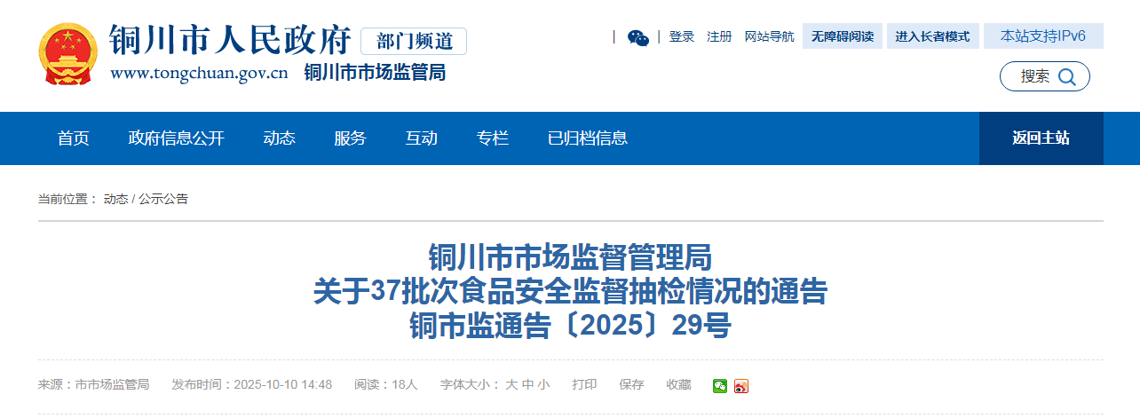 陕西省铜川市市场监督管理局关于37批次食品安全监督抽检情况的通告