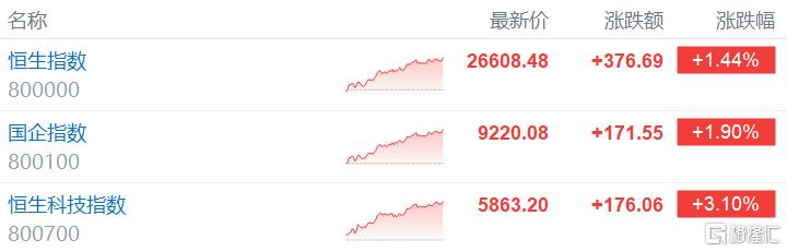 港股午评:科指涨1.6%,恒指一度重回26000点,半导体、有色金属及汽车股集体走高,蔚来、小鹏涨幅均超6%
