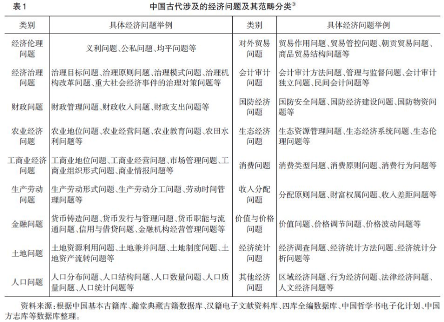 编者按 学界关于中国传统经济思想内容范畴的界定及其丰富程度的评估,至今尚未开展系统统计和专题论证。文章通过文献爬梳、 统计整理和比较分析,以问题为导向,考察分析了中国传统经济思想在广度上和深度上的丰富内涵。研究发现:第一,中国 古代经济在历史发展进程中长期存在18类主要经济问题。第二,伴随经济问题的复杂化与实践探索的经验积累,中国传统经 济思想逐渐演化形成包含经济哲学、经济主张和经济分析三个层次的结构内涵。第三,中国古代经济问题及其思想范畴在当 代经济理论中依然占有重要比重。第四,中国传统经济思想之所以内涵丰富,源于经济实践、文化积淀、思想传统、多元主 体及交流互鉴等因素的共同作用。当前,系统认识并准确把握中国传统经济思想的问题导向与丰富内涵,有助于推进中华优 秀传统文化的创造性转化,为建构中国自主的经济学知识体系夯实历史根基和提供思想养分。"IMI财经观察"公众号特推出此 文,以飨读者。 01 引言 中国传统经济思想是中华传统文化的重要组成部分。在"两个结合"特别是"第二个结合"重要思想指导下,系统梳理和全面认识 中国传统经济思想,是一项兼具重要理论和现实价值的研究课题。其中,探究并论证中国传统经济思想的具 ...