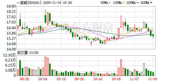 进一步统计,近1个月内该股累计发生4笔大宗交易,合计成交金额为475.87万元。 (文章来源:证券时报网) 证券时报·数据宝统计显示,一诺威今日收盘价为15.49元,下跌0.32%,日换手率为1.18%,成交额为 3122.90万元,近5日该股累计下跌4.79%。 11月19日一诺威大宗交易一览 一诺威(920261)11月19日大宗交易平台出现一笔成交,成交量10.00万股,成交金额108.80万元,大宗 交易成交价为10.88元,相对今日收盘价折价29.76%。该笔交易的买方营业部为中泰证券股份有限公司 淄博中润大道证券营业部,卖方营业部为东吴证券股份有限公司济南海右路证券营业部。 | 相对当日收 | 成交量 | 成交金额 | 成交价格 | 盘价折溢价 | 买方营业部 | 卖方营业部 | | --- | --- | --- | --- | --- | --- | --- | | (万股) | (万元) | (元) | (%) | | | | | 中泰证券股份有限公司 | 东吴证券股份有限公司 | 10.00 | 108.80 | 10.88 | -29.76 | 淄博中润大道证券营业 | | 济南海右路证 ...