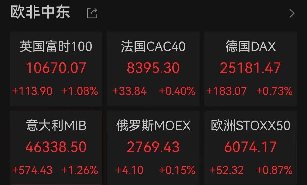欧洲股市,集体上涨!黄金、白银反弹