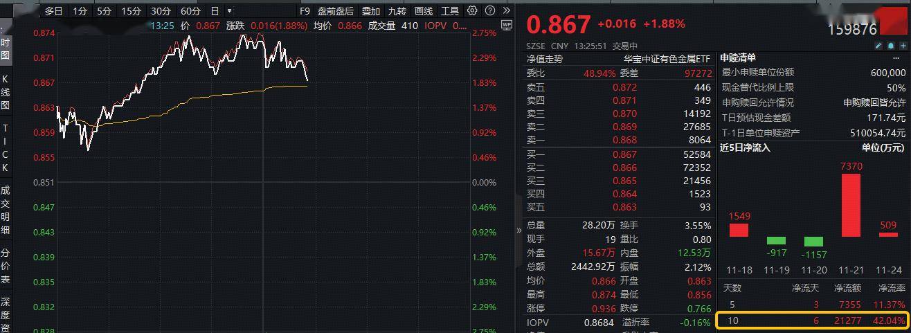 ETF盘中资讯 | 华锡有色涨停!有色龙头ETF(159876)盘中上探2.7%,近10日累计吸金2.13亿元!机构:有色或延续牛市行情!