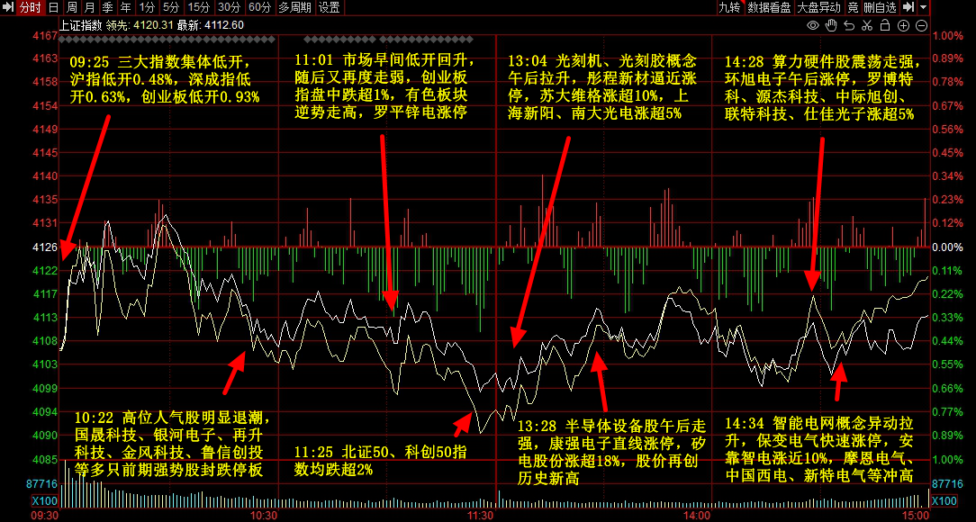 1、行情 午后光刻胶概念大幅走强,七彩化学(20CM)2连板,彤程新材涨停,上海新阳、芯源微、恒坤新材、南大光电涨超10%,艾森股份、飞凯材 料、雅克科技等集体大涨; CPO概念此后也局部反弹,源杰科技、仕佳光子、联特科技、罗博特科、剑桥科技、中际旭创、新易盛等集体大涨; 尾盘阶段,智能电网受消息刺激脉冲,三变科技回封3连板,保变电气直线拉板,特变电工、安靠智电、中国西电、许继电气、神马电力、国 电南自等集体大幅拉升; 此外,无人驾驶、有色、存储、化工等均有局部强势表现,AI应用、航天、AI医疗等集体重挫。 截至收盘,沪指收跌0.33%,深成指、创业板指分别收涨0.41%、0.56%,市场超3100股下跌,2200余股上涨。 指数小幅震荡,但市场体验非常糟糕的一天。 题材方面,玻纤概念(电子布)开盘大幅高开高走,东材科技涨停,国际复材、中材科技、宏和科技、长海股份、中国巨石、菲利华等集体大 幅冲高; 今日三市成交额为2.9万亿,相较昨日少了1万亿。 2、航天 昨日盘中一波降温后,盘后又接了一波降温。 航天板块又是停牌、又是澄清、又是集体异动警示,于是今日开盘后板块集体核按钮。 海格通信、烽火通信、神剑股份、东 ...