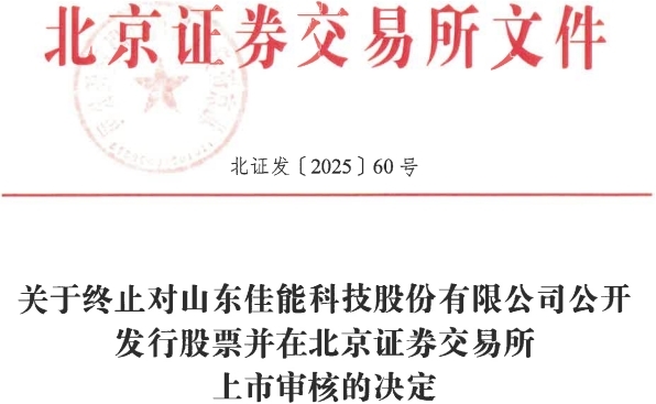 Core Points - The Beijing Stock Exchange has decided to terminate the review of Shandong Canon Technology Co., Ltd.'s application for public stock issuance and listing [1][2] - Canon Technology submitted a request to withdraw its application for public issuance of shares to unspecified qualified investors [2] - The company is engaged in energy-saving and environmental protection heat exchange technology and industrial pipeline safety technology and equipment manufacturing [3] Company Information - As of the signing date of the prospectus, the controlling shareholder of Canon Technology is Yang Liyong, who holds 32.30% of the shares directly and an additional 0.06% indirectly through a partnership [3] - Yang Liyong, along with Yang Desheng, collectively controls 61.23% of the voting rights in Canon Technology [3] - Canon Technology originally planned to issue up to 29.10 million shares and aimed to raise approximately 24.78 million yuan for various projects [4][5] Project Details - The funds were intended for the following projects: - Intelligent manufacturing project for industrial damping safety systems with an investment of 7.29 million yuan - Manufacturing project for energy-saving and environmental protection heat exchange equipment with an investment of 5.70 million yuan - Research and development center project with an investment of 4.30 million yuan - Supplementing working capital with an investment of 7.50 million yuan [4][5]