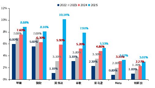 (来源:上银基金管理有限公司) 2025年11月19日,人工智能行业再迎利好冲击:英伟达三季报营收570亿美元,同比增长62%,其股价 盘后直线飙升,一度涨超6%。(注:数据来源Wind,2025/11/20) 亮眼财务数据让人工智能大势更加确定。然而,资本市场的历史一再告诉我们:即便是最真实的革命, 也往往伴随着阴影。 来源:市场投研资讯 当前,美股科技"七巨头"在标普500指数中的权重占比为47%,AI主题相关标的集中度已升至历史极 值。(注:数据来源iFinD,截至2025Q3) 2022-2025年美股七巨头在标普500指数中权重 注:数据来源iFinD,统计区间2022Q1-2025Q3,历史过往仅供参考,不预示未来表现。 价格高位之下,脆弱性随之上升。那么在海外科技股交易如此拥挤的当下,是否存在一个更底层、更能 抵御技术路径不确定性的投资机会?能与人工智能并列的主线究竟是什么? 诚然,所有颠覆性技术的早期发展都带有风险投资的色彩,其最终形态和赢家充满不确定性。在1990年 代的互联网泡沫中,我们不知道最终胜出的会是亚马逊、谷歌,还是那些早已湮没无名的公司。这种不 确定性,让科技公司的技术路线充满了 ...