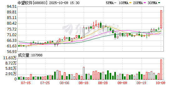 | 买入营业部名称 | 买入金额(万元) | | --- | --- | | 沪股通专用 | 7984.42 | | 机构专用 | 5597.74 | | 申万宏源证券有限公司上海闵行区东川路证券营业部 | 4890.39 | | 国泰海通证券股份有限公司上海长宁区江苏路证券营业部 | 2811.76 | | 中信证券股份有限公司上海分公司 | 2552.18 | | 卖出营业部名称 | 卖出金额(万元) | | 长城证券股份有限公司杭州民心路证券营业部 | 6509.26 | | 沪股通专用 | 5577.52 | | 招商证券股份有限公司广州天河北路证券营业部 | 4523.48 | | 中天国富证券有限公司总部 | 1643.91 | | 山西证券股份有限公司长治英雄南路证券营业部 | 1503.83 | (文章来源:证券时报网) 10月9日中望软件(688083)收盘价91.14元,收盘涨停,全天换手率6.37%,振幅20.49%,成交额9.27 亿元。科创板交易公开信息显示,当日该股因日收盘价涨幅达15%等上榜。 证券时报·数据宝统计显示,上榜的前五大买卖营业部合计成交4.36亿元, 其中,买入成交 ...