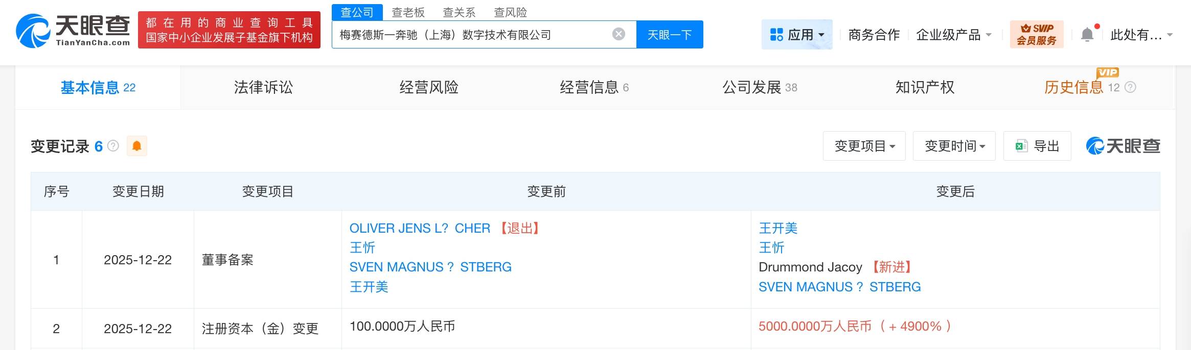 奔驰旗下数字技术公司增资至5000万元