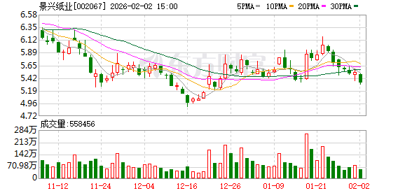 (文章来源:证券日报) 证券日报网讯 2月2日,景兴纸业发布公告称,截至2026年1月31日,公司股份回购专用证券账户以集中 竞价交易方式累计回购公司股份1,293,300股,占公司总股本的0.0877%。 ...