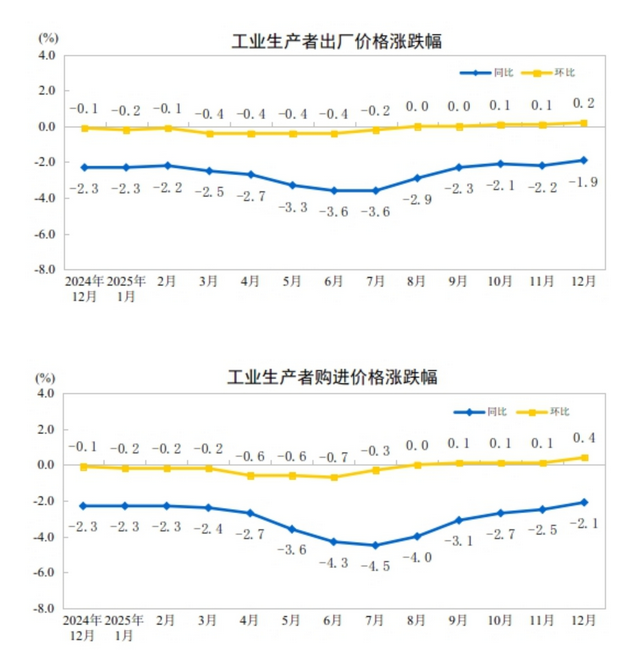 中国2025年12月PPI同比下降1.9%,环比上涨0.2%