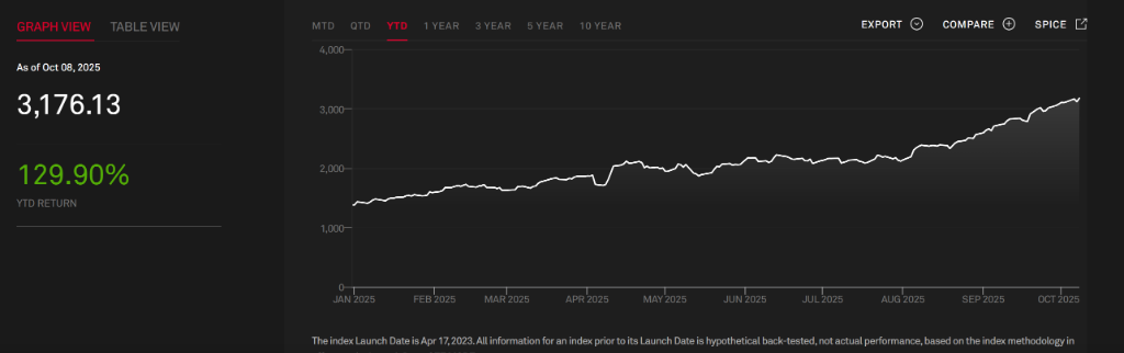 在一众科技巨头与加密货币的光环之下,今年美股市场的最大赢家悄然来自一个"备受冷落"的传统行业——金矿开采。 随着金价自1月以来飙升52%,并在本周突破每盎司4000美元大关,金矿公司的股价迎来了更猛烈的涨势。标普全球金矿指数(S&P Global Gold Mining index)今年已飙升129%,成为标普行业指数中表现最佳的板块。美国政府停摆的风险、各国央行的持续买入以及对主权债务膨胀的担 忧,共同点燃了这轮贵金属牛市。 对于Agnico Eagle、Barrick Mining和Newmont等行业巨头而言,金价的上涨意味着即将到来的丰厚利润。由于矿企的日常生产成本在很大程度上 是固定的,金价上涨所带来的额外收入几乎可以转化为纯利润。投资公司VanEck的投资组合经理Imaru Casanova直言: "对金矿股来说,这是非常棒的一年。他们手握的现金多到不知如何处理。" 黄金股表现碾压科技巨头 金矿股之所以能跑赢黄金本身,核心在于其运营模式的利润杠杆效应。更高的金价可以直接增厚利润率,从而对股价产生放大作用。 同期,比特币的价格涨幅也仅为31%。这使得曾一度被部分投资者视为"价值毁灭者"的金矿行业,重 ...