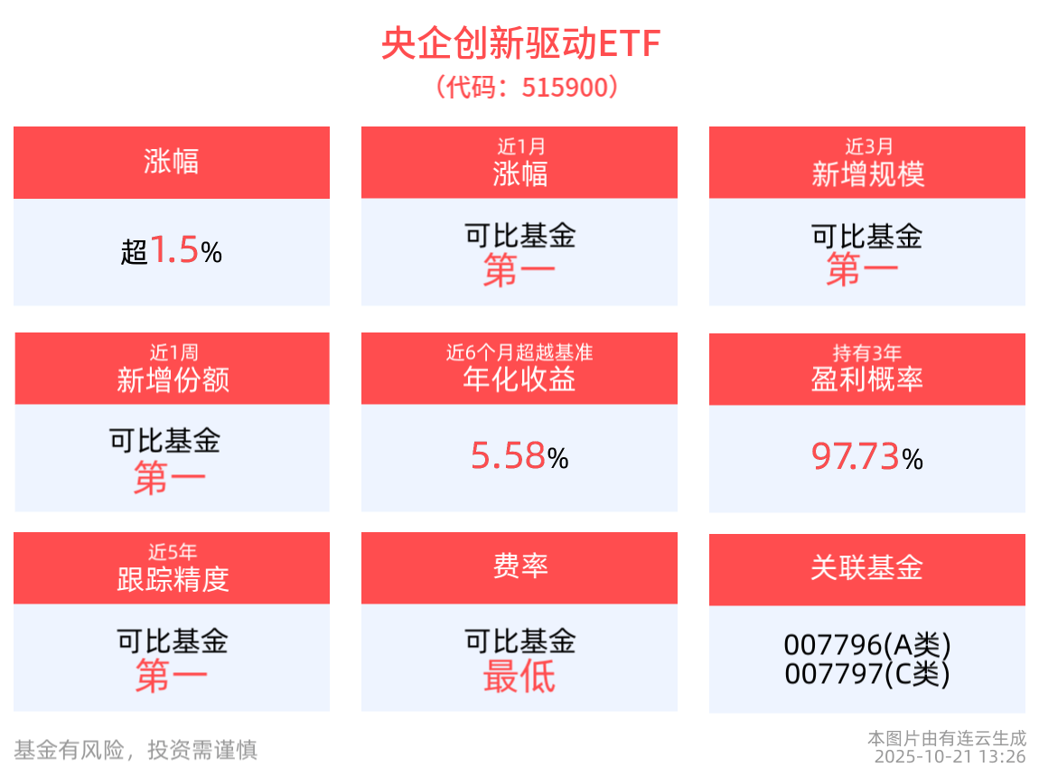 三季报陆续披露,央企创新驱动ETF(515900)涨超1.5%,石化油服涨停