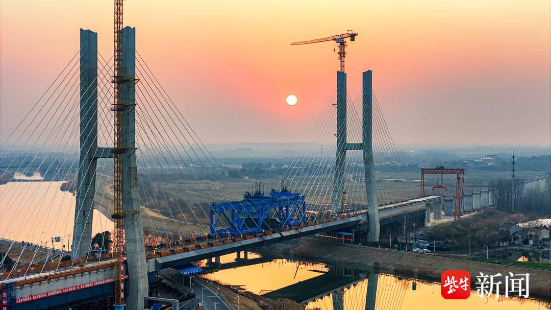北沿江高铁南京特大桥跨滁河斜拉桥顺利合龙