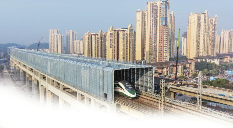 全国首例在既有运营铁路上增设的全封闭声屏障工程——达成铁路遂宁段全封闭声屏障项目,于近日完成全部安 装工作。该工程位于达成铁路线遂宁站东侧,是新建成达万高铁配套改造工程的关键部分,全长967米,地处居民 密集区、场地狭小,吊装超40米高,仅能在每周四凌晨"天窗点"作业。中铁十局历时10个月,在64个"天窗点"完 成3300吨钢架、3万平方米屏体的安装。 刘昌松 摄(C视觉) ...