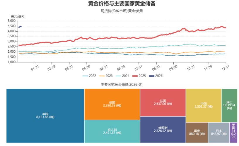 首先讲讲黄金。黄金的长周期走势,核心由其金融属性与信用风险主导,目前显然仍处于大的上行周期中。从各国央行数据来看,自2023年至今,全球央行 持续增持黄金,且毫无降温迹象。尤其是中国央行,截至去年年底已连续14个月增持黄金。事实上,中国央行或许是最擅长配置黄金的央行,跟随其节奏往 往不会出错,因此从长周期视角来看,黄金的上行趋势仍未完待续。 此外,抛售美国国债的交易似乎再度启动。近期,丹麦养老金发言人表示计划于1月底清仓美国国债;尽管其清仓规模不大,但随后瑞典最大养老基金也宣 布清仓,规模约70亿美元至80亿美元。该基金管理着超过300万瑞典人的养老金,其决策绝非一时冲动,而是基于对未来长期趋势的判断所做出的转向。 目前来看,特朗普作为美国总统,前期将对格陵兰岛的诉求升级为关税威胁及其他相关威胁,而欧洲方面则以抛售所持巨额美债作为回应。数据显示,欧洲 八国当前持有的美债规模约接近2万亿美元,占海外投资者持有总量的比例较高,约为五分之一左右。 数据来源:Wind,数据截至2026年1月 大家可能也关注到了近期的一些重大事件,在此我们稍作分享与点评。美国总统近期对格陵兰岛的态度出现大幅反转:前期表态强硬,后续则放 ...