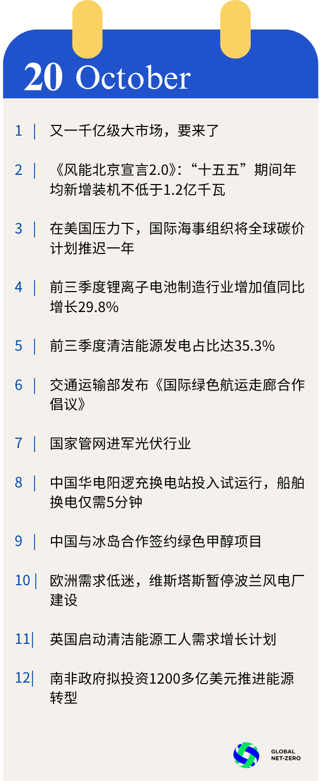 来源:环球零碳 其中,中国"十五五"期间年新增装机容量不低于1.2亿千瓦,其中海上风电年新增装机容量不低于1500 万千瓦,确保2030年中国风电累计装机容量达到13亿千瓦,到2035年累计装机不少于20亿千瓦,到2060 年累计装机达到50亿千瓦。 01 又一千亿级大市场,要来了 新华社记者10月20日从市场监管总局动力电池回收利用标准化专题新闻发布会上获悉,根据电池使用寿 命推算,我国即将迎来动力电池规模化退役阶段。预计到2030年动力电池回收国内市场规模将突破千亿 元。 据统计,2024年国内动力电池回收量突破30万吨,对应市场规模超480亿元。 市场监管总局标准技术司司长刘洪生说,市场监管总局会同工业和信息化部等相关部门,围绕动力电池 回收利用全产业链,积极推进相关国家标准研制发布,为动力电池回收利用产业发展提供了有力的技术 支撑。 截至目前,我国已发布动力电池回收利用国家标准22项,涵盖动力电池回收通用要求、管理规范、拆解 规范、余能检测、再生利用、锂离子废弃物回收利用、再生黑粉等多个方面,有力支撑和引领动力电池 回收产业高质量发展。 (来源:新华社) 02 《风能北京宣言2.0》:"十五五"期间年 ...