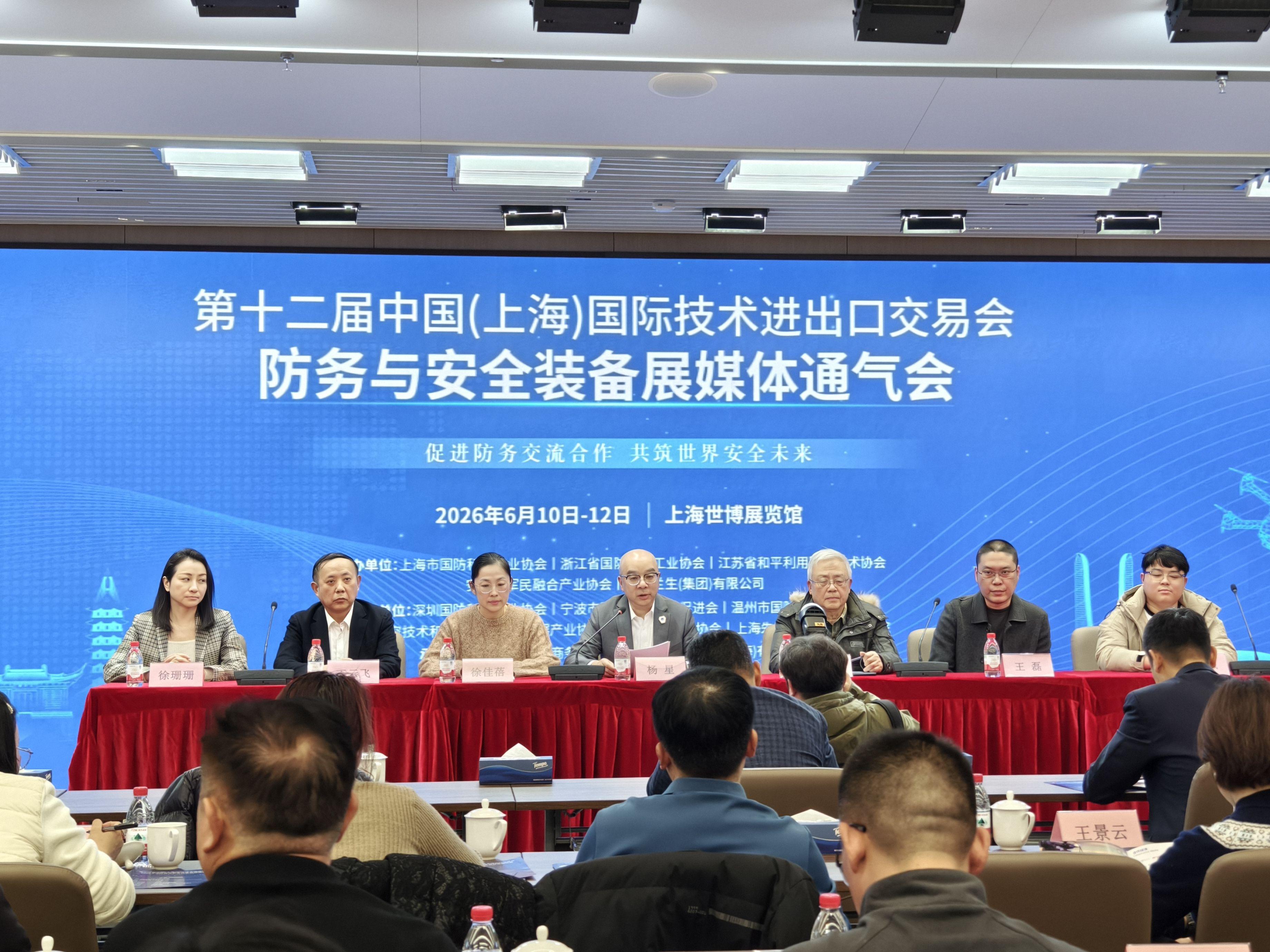 本报讯(记者张文湘)1月16日,第十二届中国(上海)国际技术进出口交易会防务与安全装备展(以下简 称"上交会防务展")媒体通气会在上海顺利举办。 本届上交会防务展现场,将吸引国内外诸多专业代表团参与,其中包括中亚五国、沙特阿拉伯、印度尼 西亚等20余个国家的专业代表团,以及国内政府、应急、航空航天、兵器、船舶等相关部门及科研单 位。 主办方相关人士介绍,未来上交会防务展将持续打造立足中国、辐射全球的高端防务安全技术合作平 台,助力打通技术贸易双向通道,为国内产业升级与全球安全治理体系完善注入持久动力。 据介绍,上交会防务展将于2026年6月中旬在上海举办,经前期统筹策划与多方联动,展会将由上海市 国防科技工业协会、浙江省国防科技工业协会、江苏省和平利用军工技术协会、安徽省军民融合产业协 会与东浩兰生(集团)有限公司联合主办。 上交会防务展致力于打造聚焦技术创新与全球合作发展趋势的协作生态平台,预计展览面积10000平方 米,超200家标杆企业参展。展会现场以"促进防务交流合作,共筑世界安全未来"为主题,设置先进制 造装备、航空航天与新材料、空间信息与导航定位、网络信息与安全、电子装备与元器件、新能源与核 能、 ...