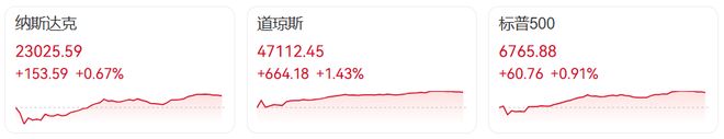 编辑 | 夏木 美股齐涨 美股主要股指周二继续走高,一系列经济数据强化了投资者对于美联储将在12月实施年内第三次降息的 预期。然而,科技板块表现疲弱,在一定程度上限制了纳斯达克指数的涨幅。 截至收盘,道指上涨664.18点,涨幅1.43%,报47112.45点;标普500指数上涨60.76点,涨0.91%,报 6765.88点;纳指上涨153.59点,涨0.67%,报23025.59点。 【热门股表现】 热门大型科技股涨跌互现。Meta上涨3.78%,微软上涨0.63%,亚马逊上涨1.50%,苹果上涨0.38%,特 斯拉上涨0.39%;英伟达下跌2.59%。此前有市场消息称,Meta正考虑未来数年在数据中心使用Alphabet 的人工智能芯片,并计划在明年之前在谷歌云租用芯片,推动Alphabet股价上涨1.53%并再创历史新 高。 零售板块走势强劲,Kohl's大涨42.53%,Abercrombie&Fitch飙升37.54%,均因上调全年盈利预期而走 高;Burlington Stores因第三季度营收不及预期大跌12.24%。 纳斯达克金龙中国指数收涨0.35%,报7753.25点。中概股中,小马智行 ...