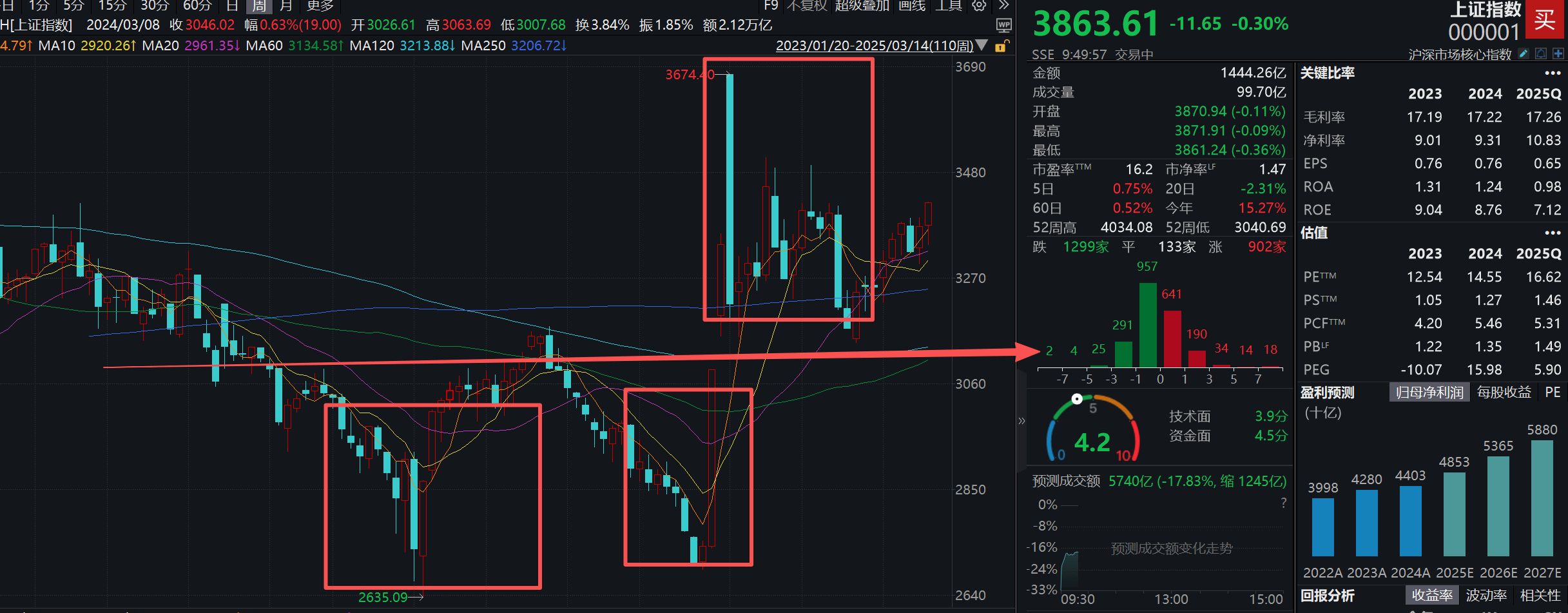 股市中一直有句话叫做高抛低吸,那这"高"究竟有多高?"低"究竟有多低呢?我相信这是困扰投资者的一大难题。 事实上,"逢低买入"背后的逻辑正是运用了"均值回归"的市场规律。恰如投资大师安德烈·科斯托拉尼提出的"遛狗理论"所说,股市价值和价格的关系就像是 遛狗时主人和狗的关系。遛狗时人通常缓步向前,而狗有时跑在人前、有时跑在人后,这就像价格有时高于价值、有时低于价值,但迟早会回归价值。 而带入到市场中我们就会发现,在2025年之前市场始终以3000点为锚点,上下波动。因此3000点以下的时候或成了逢低布局的好时机,而如今到了4000点, 我们又该如何布局呢? 数据来源:Wind 2025年之前上证指数均围绕着3000点波动 用数据说话,高盈利+低估值或有高胜率 "一百个人眼中有一百个哈姆雷特"其实我们光靠猜是没什么意义的,对于行业而言不同行业拥有不同的景气度,当前AI行业40倍的估值大家不嫌贵,而消费 10倍不到的估值却还有人高喊尚未见底。 而如果配合上整体的盈利状况,我们就可以得到以下表格:X轴代表行业营收总收入增长,而Y轴则是PE(TTM)的估值分位数。 行业估值和营收的比较(申万一级) 因此我们只能从数据的 ...