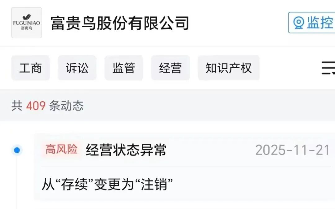 消息传出后,不少网友感到惋惜,纷纷"回忆杀"起来:"可惜了一个好不容易建立的品牌。" 不过,11月25日,"富贵鸟FUGUINIAO"通过官方微信公众号立刻对注销传闻进行了澄清,并作出正式回应,称目前品牌运营一切正常,各项业务有序推 进。 近日有媒体消息称,天眼查APP显示,日前,富贵鸟股份有限公司(下称"富贵鸟")登记状态由存续变更为注销,注销原因为宣告破产。 富贵鸟在2019年8月26日曾发布公告表示,公司收到法院民事裁定书显示,驳回富贵鸟有限公司管理人的申请,终止富贵鸟重整程序,宣告富贵鸟破产。 图片来源 "富贵鸟FUGUINIAO"公众号截图 回应称:"富贵鸟"系列品牌商标及相关知识产权,已于2019年通过合法、公开的司法拍卖程序,由我方母公司盛悦晟(厦门)资产管理有限公司成功竞得 并完成权利转移。自此,"富贵鸟"品牌已由全新的运营主体承接,并持续开展设计、生产与销售等全部经营活动。目前公司业务健康、运营正常,线上线 下(300959)销售渠道畅通,持续为市场与消费者提供优质的产品与服务。 回应表示,现品牌与原注销主体无关联。"媒体报道中提及的'富贵鸟股份有限公司'的破产注销,系其独立的企业行为。该主 ...