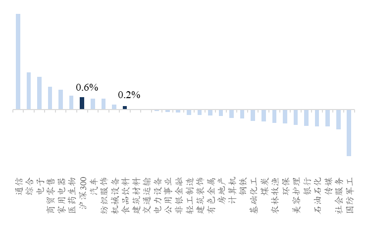 炒股就看金麒麟分析师研报,权威,专业,及时,全面,助您挖掘潜力主题机会! 一、市场表现 二、重要公告 1、【百润股份】关于百润转债回售结果的公告。百润转债"回售期已于2025年11月25日收盘后结束,根据中国证券登记结算有限责任公司深圳分公司出具的《证券回售付款通知》,"百润转债 1、11月26日食品饮料板块涨幅为0.2%,跑输沪深300指数约0.4pct,在申万31个子行业中排名第10。 图表1:食品饮料板块涨幅为0.2%,排名第10 资料来源:Wind、开源证券研究所 2、食品饮料板块中,零食(+0.8%)、软饮料(0.7%)、预加工食品(0.4%)表现相对靠前。欢乐家、海欣食品、有友食品涨幅领先。 图表2:零食、软饮料、预加工食品表现较好 资料来源:Wind、开源证券研究所 2、【盐津铺子】关于部分限制性股票回购注销完成的公告。公司本次回购注销限制性股票的激励对象共5名,回购注销的限制性股票数量合计为70,000股,注销股份占注销前总股本2.72亿股的 图表3:当日涨跌前5股票 3、【糖酒快讯】11月25日消息,摘要酒丙午马年生肖酒即将上线金沙酒业官方商城。据介绍,该新品1500ml/瓶,承大曲酱香回沙 ...
