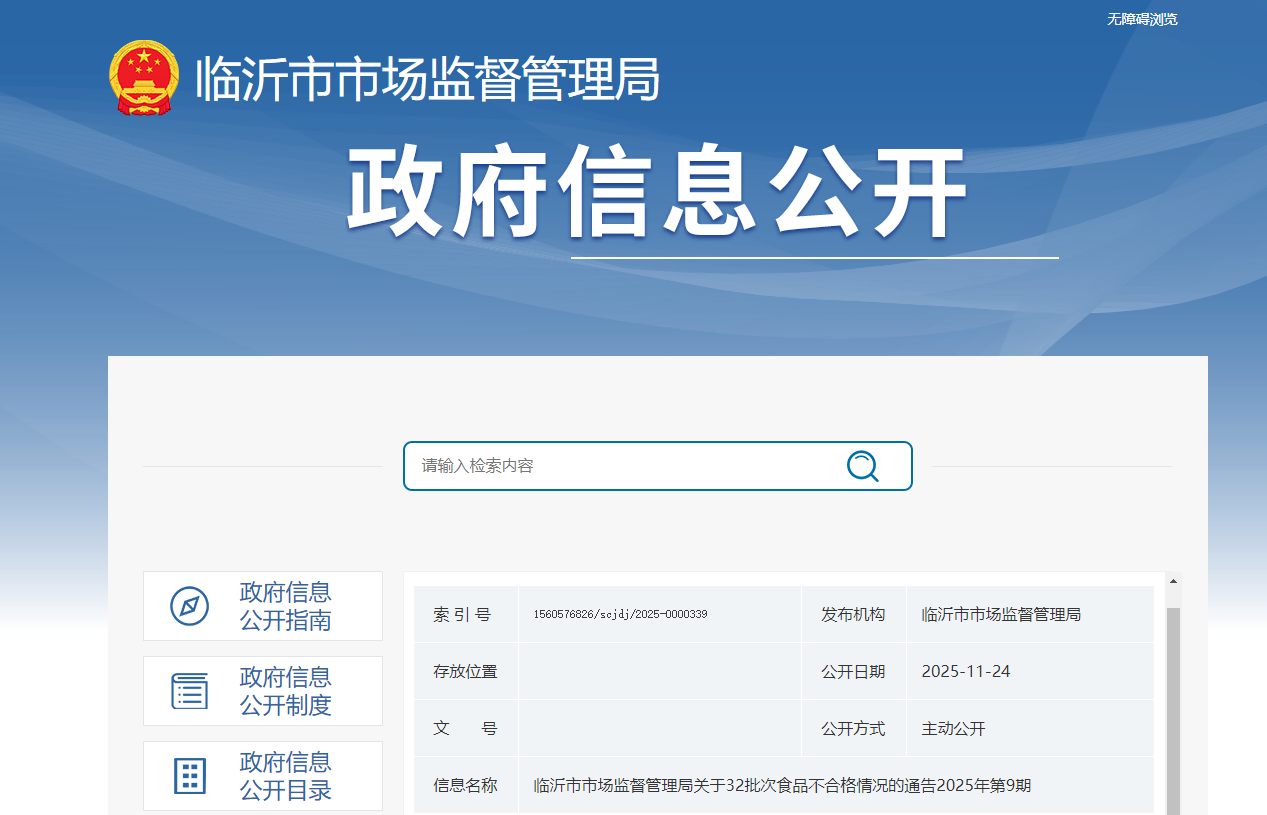 山东省临沂市市场监督管理局关于32批次食品不合格情况的通告2025年第9期