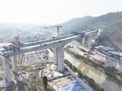 新桥坝特大桥施工全景图。蜀道集团供图 作为国家高速公路网"十纵十横"纵八线"北京至昆明"的重要组成部分,汉广扩容项目建成后,将串联广 元国家级经济技术开发区与汉中航空智慧新城,有效推动装备制造、物流运输等上下游产业集群发展。 届时,成都至汉中行车时间将由6小时缩短至4.5小时。 新桥坝特大桥全长1582.3米,其中主桥长350米,为三跨连续刚构结构,主桥主跨170米,两侧边跨90 米,桥面净宽15.40米。 大桥先后跨越S212国道、长滩河、广达铁路隧道及荣山互通式立交E匝道。施工过程中,项目团队采用 型钢桁架搭建合龙段劲性骨架,实施全程48小时不间断的温度与结构变形监测,科学选定最佳合龙时 机,确保合龙过程安全可控。 汉广扩容项目全长71.298公里,起自广元市旺苍县自生村(川陕交界处),连接待建的G5京昆高速公路 扩容项目陕西段,经天星镇、燕子乡、荣山镇、龙潭乡,止于周家河乡附近,接G5兰海高速公路广元 至南充段,对接在建的京昆高速公路广元至绵阳扩容项目。全线采用双向六车道高速公路标准建设,设 计时速100公里,桥隧比84.3%,是目前四川省内桥隧比最高的双向六车道山区高速公路。 截至目前,汉广扩容项目累 ...