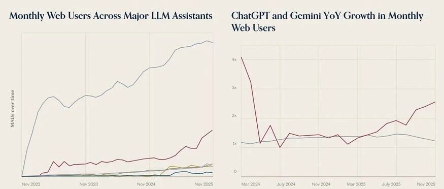 来源: a16z Z Highlig hts Olivia Moore 与 Justine Moore ,硅谷顶级风投机构 a16z 合伙人,被业内称为 " 创投双胞胎 (@venturetwins)" 。她们长期深耕消 费者科技领域,是目前硅谷 AI 应用层最敏锐的早期投资人与观察者。 前言 对于各大AI实验室而言,今年是消费者产品发布的爆发之年。OpenAI推出了数十项AI功能——包括GPT-4o图像生成、独立的 Sora应用以及群聊功能。Gemini发布了几款极具病毒传播力的图像和视频生成模型(Nano Banana和Veo)。其他实验室如 Anthropic、Perplexity、xAI和Meta也都推出了面向消费者的新工具,涵盖聊天、编程、搜索、图像生成等领域。 结果如何?可以说是喜忧参半。 总体而言,AI的使用率在上升。但在通用助手方面,绝大多数消费者仍然只使用一款产品。在今年大部分时间里,ChatGPT 的周活跃用户中,访问过其他大模型提供商的比例不到10%。 来自Yipit的数据也显示消费支出同样高度集中——只有9%的消 虽然大语言模型助手的竞争可能不是赢家通吃,但目前的局面看起来更像是赢家拿 ...