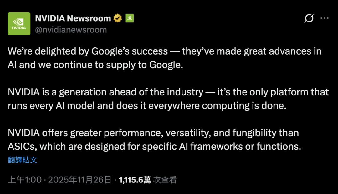 如果仅看过去这一个月,很难想象这是那个在 2023 年因为 Bard「翻车」而被全球科技圈集体嘲笑的 Google。 上周(11 月 18 日),Google 发布了新一代大模型 Gemini 3,用恐怖的实力碾压了更大模型,基于 Gemini 3 Pro 的 Nano Banana Pro 更是延续了 Google 在 AI 生成图像上的「王座」,也让 OpenAI 更加「焦虑」。 不单如此,Gemini 3 也彻底了扭转「Google 掉队论」,自研 TPU 也被视为英伟达算力霸权的最大变量,Meta 都被传出正评估大规模采购 TPU,直接让 英伟达股价下跌近 7%,随后英伟达官方也在 X(原 Twitter)上发文称: 「我们为谷歌取得的成功感到高兴——他们在 AI 领域取得了重大进展,而我们也将继续向谷歌(云)提供产品。」 图片来源:X 与此同时,Anthropic(Claude)在上月也刚宣布了最新一批百万级的 Google TPU 订单 ,包括 OpenAI 联合创始人、前首席科学家 Ilya Sutskever 新创立的 SSI 也在年初选择了 Google TPU 作为算力来源。 坦白讲,这一 ...