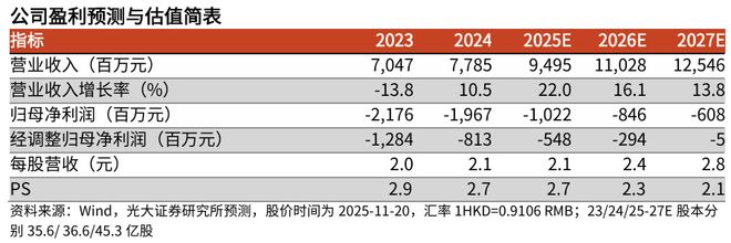 Core Insights - The company achieved a significant turnaround in profitability during Q3 2025, with adjusted net profit reaching 0.29 billion yuan, compared to a loss of 2.4 billion yuan in the same period last year, indicating a clear inflection point in earnings [1][4] Revenue Growth - In Q3 2025, the company reported total revenue of 2.478 billion yuan, representing a year-over-year increase of 31.4% and a quarter-over-quarter increase of 5.5%, primarily driven by the continued high growth of its AI business [1] - Public cloud revenue reached 1.752 billion yuan in Q3 2025, up 49.1% year-over-year and 7.8% quarter-over-quarter, with AI billing revenue contributing 780 million yuan, marking a nearly 120% increase year-over-year [2] Profitability Metrics - The adjusted EBITDA for Q3 2025 was 827 million yuan, a substantial increase of 345.9% year-over-year, leading to an adjusted EBITDA margin of 33.4%, which improved by 23.6 percentage points year-over-year and 16.1 percentage points quarter-over-quarter [1][4] - The company successfully turned around both adjusted operating profit and adjusted net profit, achieving 0.15 billion yuan and 0.29 billion yuan respectively, compared to losses of 1.4 billion yuan and 2.4 billion yuan in the previous year [1] Ecosystem and Industry Cloud - Revenue from the Xiaomi & Kingsoft ecosystem reached 690 million yuan in Q3 2025, reflecting an 84% year-over-year increase and accounting for 28% of total revenue [3] - The industry cloud segment also showed stable growth, with revenue of 726 million yuan in Q3 2025, up 2.2% year-over-year and 0.2% quarter-over-quarter, indicating ongoing collaboration and project advancements [3] Future Outlook - The company anticipates strong customer demand for AI services, with high-margin inference business expected to increase in proportion, potentially leading to new growth points in robotics and API services [2] - The company maintains revenue forecasts of 9.5 billion yuan, 11.03 billion yuan, and 12.55 billion yuan for 2025, 2026, and 2027 respectively, while adjusting the projected adjusted net profit for 2025 to -548 million yuan, reflecting improved profitability expectations [4][6]
