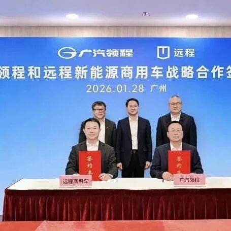 1月28日,浙江远程新能源商用车集团有限公司与广汽领程新能源商用车有限公司在广州正式签署战略合作协议。双方将围绕客车、 VAN类产品推广以及甲醇电动动力应用、能源加注等生态建设方面开展深度合作,共同推动我国商用车产业向绿色、智能方向加速转 型。 广州公交集团党委书记、董事长覃海宁,远程新能源商用车集团CEO范现军,副总裁丁鼎,广汽集团执委、广汽领程总经理张志勇,广 汽领程首席营销官杨林等共同出席签约仪式。 根据协议,双方将整合各自渠道、品牌、服务等资源,共同聚焦广州及周边城市联合开展市场推广等工作。通过优势互补、资源共享, 加快新能源商用车的技术迭代与市场普及,共同应对行业变革,提升在中国商用车市场的整体竞争力。 远程新能源商用车坚持以研发为先导,以创新商业模式为基础,打造新能源商用车第一品牌,过去五年内实现年度复合增长率超 120%,稳扎稳打稳健发展引领绿色商用。截至2025年,已连续4年斩获新能源商用车行业年度冠军,持续领跑行业。 广汽领程作为广州汽车集团股份有限公司下属商用车版块的核心企业,拥有近二十年的深厚造车底蕴,在整车设计、技术集成与智能制 造方面具备显著优势。 作为本次战略合作签约仪式的重要见证 ...