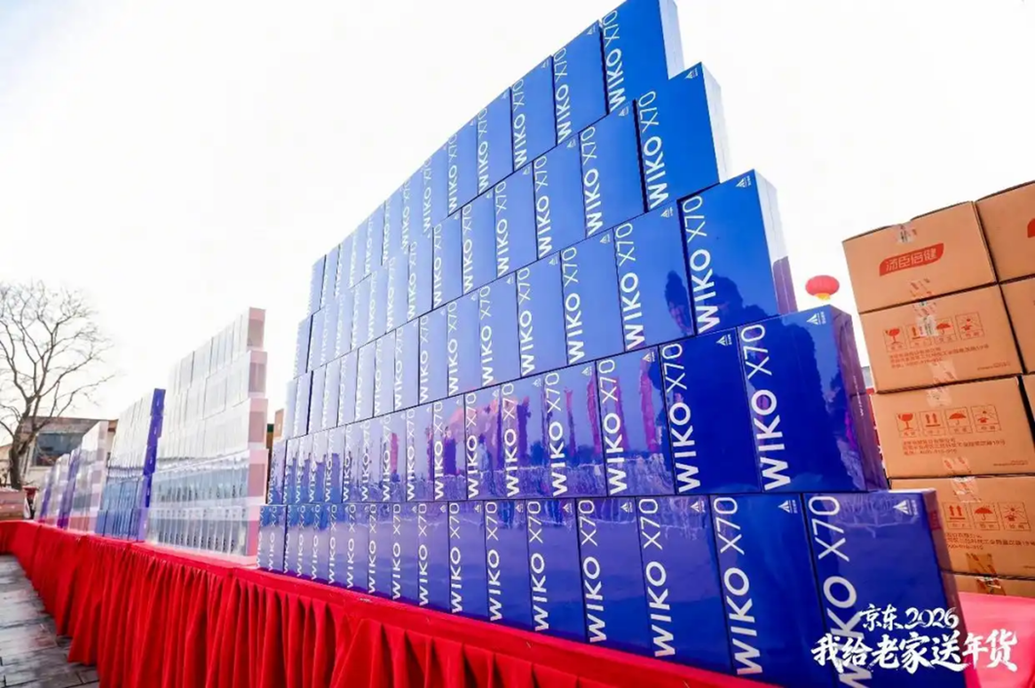农历新年还没到,一面由上千台蓝色手机垒成的"墙",提前成了2026年科技圈的第一个热议话题。 1月29日,江苏宿迁,京东集团创始人刘强东为光明村村民送上的年礼中,一款名为WIKO X70的大屏 AI手机格外醒目。不久后,"刘强东送年货上千部手机垒成一面墙"登上热搜,让这个对多数国人尚感陌 生的手机品牌,闯入了大众视野。 这一市场切入点,基于对数据的精准洞察。通过与京东的深度合作,WIKO得以接触到中国最广泛的消 费电子用户样本。数据显示,在千元机市场,存在着一个显著的"体验落差":一方面,年轻品牌热衷于 比拼性能参数,功能菜单层层叠叠;另一方面,传统品牌的低价机型往往在品质和耐用性上妥协。而对 于中老年用户而言,他们的核心诉求异常朴实:屏幕够大、字迹清晰;手机耐摔、用得长久;操作简 单、最好能动口就不动手;关键时刻,如在户外的时候,能与家人快速联系上——面对这些需求,大屏 AI手机的品类应用而生 。 WIKO X70的所有产品特性,都像是对这份需求清单的逐一回应: 首先,它将"可靠"作为第一要义,打破了千元机"低价低质"的刻板印象。X70搭载了源自华为旗舰技术 的昆仑玻璃,比常规屏幕耐摔能力提升10倍;采用" ...