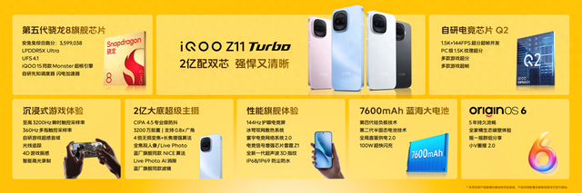 近日,iQOO推出全新机型iQOO Z11 Turbo,以"全场景全能"为核心定位,在性能、影像、续航、设计 等关键领域全面升级,首销优惠价2399元起。 这款被称为"战斗精灵"的新机,首次在Z系列中采用金属中框搭配玻璃或玻纤后盖的旗舰级材质组合。 机身配备6.59英寸黄金中屏,74.42mm超窄宽度搭配10.4mm大R角设计。产品提供沧浪浮光、光晕粉、 天光白、极夜黑四款配色。同时,该机首次支持IP68与IP69级防尘防水,并搭载全新一代超声波3D指纹 识别,日常使用安全性与便捷性显著提升。 性能方面,iQOO Z11 Turbo搭载第五代骁龙8旗舰芯片与自研电竞芯片Q2的双芯组合,配合LPDDR5X Ultra内存与UFS 4.1存储,构成"性能铁三角"。其中,第五代骁龙8采用台积电3nm制程,CPU性能提升 36%,功耗降低42%,GPU性能提升11%,功耗降低28%。搭配Monster超核引擎,可实现PC级纹理超分 与144FPS超帧并发,经测试,其安免兔综合跑分突破359.9万分。针对游戏场景,该机通过KPL比赛用 机测试认证,《王者荣耀》原生144帧模式下平均帧率达143.8,《原神》平均帧率稳定 ...