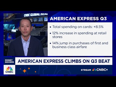 Welcome back. Increased card spending helped drive a profit surge for American Express. CNBC's Hugh Son following that this morning.Hugh, looked like a good quarter. >> Yeah, that's right, Sarah. So, American Express out this morning with a beat on the top and bottom lines, fueled by a jump in their spending by affluent customers.So, total spending on MX cars rose 8.5% to 421 billion in the third quarter, which is a pick up from the 6.5% growth rate of the second quarter. MX CFO Kristoff Layak telling me to ...
