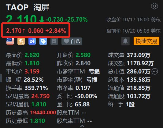 美股异动 | 淘屏盘前反弹约3% 拟收购Alphalion加速布局AI数字生态