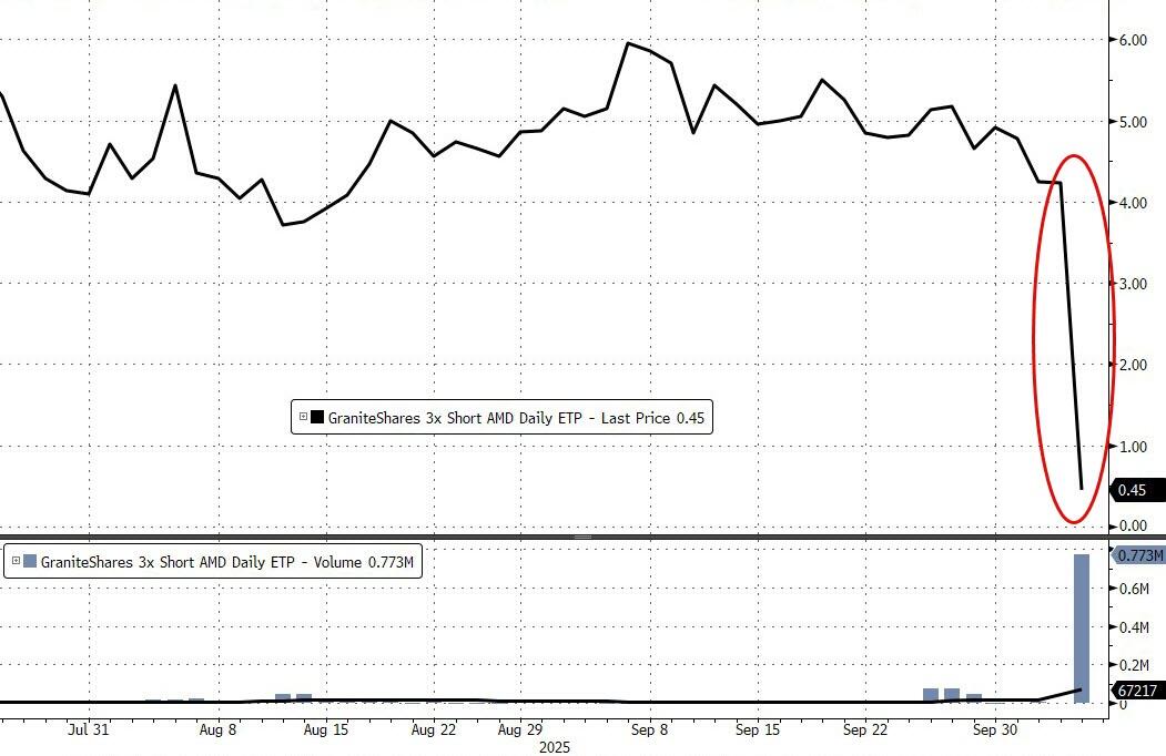 AMD一夜暴涨,3倍做空AMD的ETF“一夜清零”,‘波动率恐慌’再度燃起