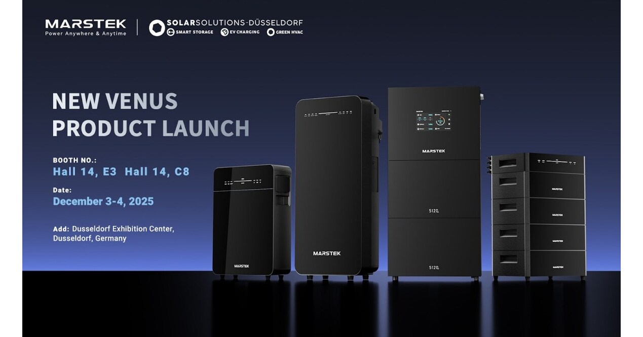 Core Insights - MARSTEK, a leading innovator in energy storage solutions, is participating in Solar Solutions Düsseldorf 2025, showcasing its latest advancements in energy storage and smart charging with the new VENUS products [1][9]. Product Highlights - The MARSTEK VENUS G is a stackable 5kW AC-coupled energy storage system (ESS) featuring 500V V-Boost technology, a bidirectional inverter with 10kW peak power, ultra-fast backup switching, and modular capacity expansion from 5kWh to 30kWh. It supports 7.5kW AC PV input for easy integration with various PV systems and enables fast, low-tariff charging [2]. - The 11kW Three-Phase EV AC Charger is designed for the MARS I PLUS system, featuring adaptive load balancing, robust IP54/IK10 protection, and ISO 15118 readiness for safe and flexible EV integration [3]. - The MARSTEK VENUS D (AC Version) is a plug-in ESS that provides 2.5kW bidirectional on-grid power with peak backup support up to 3.0kW. Its modular design allows expansion from 2.56kWh to 15.36kWh, incorporating AI forecasting for efficient energy management [4]. Additional Offerings - MARSTEK will also present its Balcony ESS range (VENUS A, D, and E with Smartbox) and Residential ESS solutions, including the MARS I PLUS three-phase and the VENUS X [5]. - A special launch event will be held on December 3, unveiling the newest additions to the VENUS series and the Home Energy Management System (HEMS), which features AI-powered energy optimization and smart energy management capabilities [6]. Company Overview - Founded in 2009, MARSTEK integrates R&D and manufacturing to deliver comprehensive energy storage solutions, including residential and balcony ESS, portable power stations, power banks, and rechargeable batteries, aiming to make smart, affordable energy accessible to every household [7].