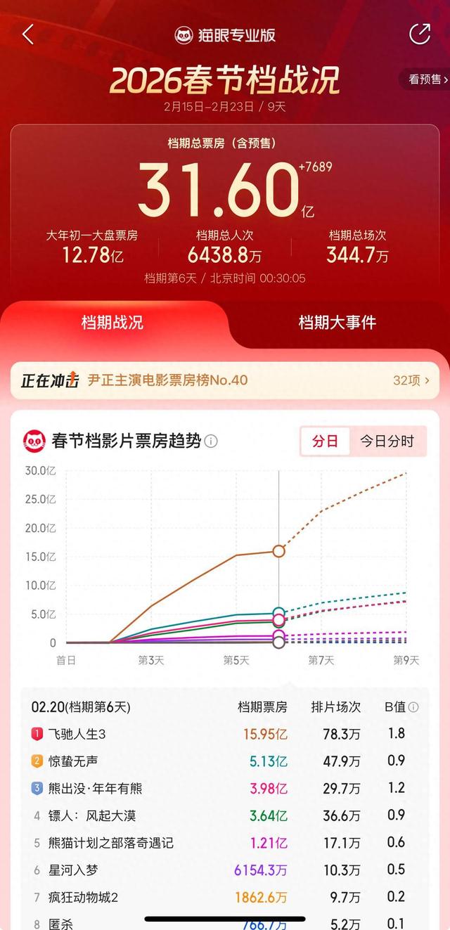 2026年春节档电影总票房破30亿元!《飞驰人生3》领跑