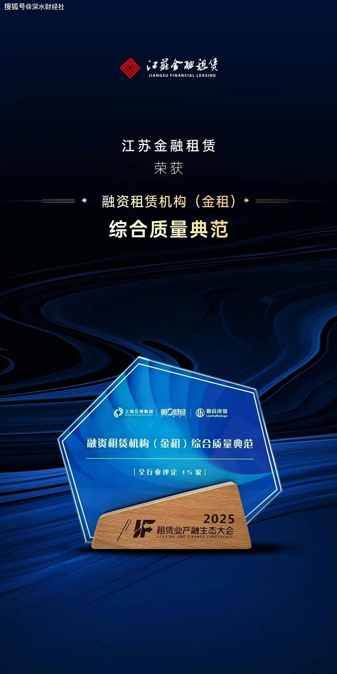 Core Viewpoint - Jiangsu Financial Leasing Co., Ltd. (Jiangsu Jinzu) has been recognized for its comprehensive quality and excellence in service to the real economy, winning the "Financing Leasing Institution (Jinzu) Comprehensive Quality Model" award at the "2025 Leasing Industry Production and Financial Ecosystem Conference" held in Shanghai [1] Group 1: Awards and Recognition - Jiangsu Jinzu received the "Financing Leasing Institution ESG Influence Model" award, becoming one of the 15 benchmark enterprises in the industry recognized for its systematic practices in Environmental, Social, and Governance (ESG) [1][8] - The awards reflect the market and industry’s acknowledgment of Jiangsu Jinzu's high-quality development [1] Group 2: ESG Practices - The company has fully integrated ESG concepts into its governance and strategic development, establishing a systematic governance structure and comprehensive management mechanisms [8] - Jiangsu Jinzu actively practices green finance, continuously expanding its green leasing business to promote green transformation [8] - The company is committed to serving the real economy, focusing on inclusive finance, and providing precise support for the development of small and micro enterprises [8] Group 3: Future Goals - Through standardized ESG management, high-quality information disclosure, and continuous innovative practices, Jiangsu Jinzu has become a model enterprise for ESG development in the financing leasing industry [9] - The company aims to deepen its ESG governance system and promote the synergy between business development, environmental protection, and social benefits, striving towards the goal of becoming an "internationally leading equipment leasing service provider" [9]
