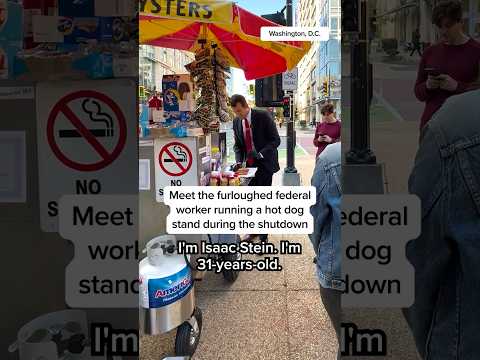 I'm Isaac Stein. I'm 31 years old. I live right here in Washington DC and I am operating a hot dog stand.The name of my stand is Shyers, which is reflective of the fact that I am a lawyer. I write retirement plan regulations. And I am on furlow right now.So, I'm having a grand old time selling hot dogs. When I was uh notified that I was furled, I was back at my office job, but I'd also been doing this hot dog stand for a few weeks. And I just figured I will be notified when I come back.And in the in the int ...