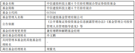 中信建投科技主题6个月增聘冷文鹏 成立不到3年亏43%