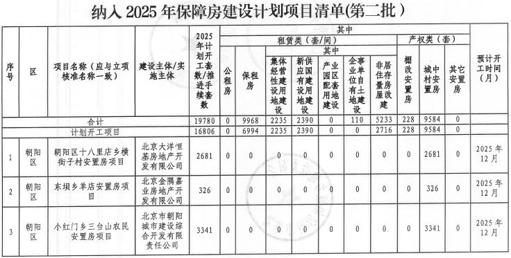 今年年初,北京定下了全年建设筹集保租房5万套(间),竣工各类保障房8万套(间)的任务,并列入 市政府实事之一。 | | 苹果因综合交通枢纽 | | | | | 北京公联鼎 | | | | --- | --- | --- | --- | --- | --- | --- | --- | --- | | 石景 | 1604-648 地块改建保 | | 1070 | | 1070 | 宸交通枢纽 | 1070 | 2026 年 3月 | | 山区 | 障性租赁住房项目 | | | | | 建设发展有 | | | | | (1#楼) | | | | | 展公司 | | | | 顺义 | 和光瑞府项目自持住 | | 1584 | 0 | 1584 | 北京顺和润 致置业有限 | 1584 | 2026年 | | ﻵ | 年改造保障性相责任 | | | | | | | 月 | | | 房项目 | 公司 | | | | | | | | 序号 | 区 | 项目名称 | 建设主体/实施主体 | 第集途径 | 套数合计 (套/间) | | --- | --- | --- | --- | --- | --- | | | | 合计 | ...