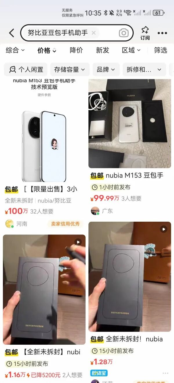 华夏时报记者 胡梦然 见习记者 黄海婷 深圳摄影报道 近日,字节跳动与中兴合作推出的努比亚M153(豆包AI手机)在二手市场被炒至3.6万元。追着价格的 传闻,《华夏时报》记者近日走访深圳华强北发现,数十家档口均表示"没听过""没见过""市场没货"。 而在闲鱼等平台上,该手机标价从3.6万飙升至100万元,配文渲染"功能强大""未来入口""自动化操 作"。线下"查无此机"与线上"百万标价"的撕裂景象,成为透视AI技术落地困境的棱镜。 更戏剧性的是,微信、支付宝等已对其核心功能实施技术封锁。这场由"下一代交互"叙事点燃的热度, 正遭遇商业生态打击,迫使业界审视AI进化为"智能代理人"时的伦理与规则重构问题。 百万标价与"情绪定价"背后 "价格波动有点大,你看最低的时候不到4000元,3800元就可以买,那价格变来变去,这种随机性很 强,有时候跟坐过山车一样。"一位闲鱼卖家对《华夏时报》记者表示,语气里带着对这种波动早已习 惯的淡漠。12月11日晚,记者在闲鱼平台搜索"豆包AI手机",发现有四个卖家分别标价100万元、99.9 万元、3.9万元和2.8万元,截至12月15日,这些天价链接依然倔强地悬挂着,且"想要 ...