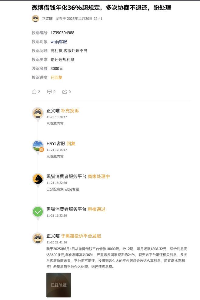 综合利率高达36%!微博借钱被指远超助贷新规利率红线