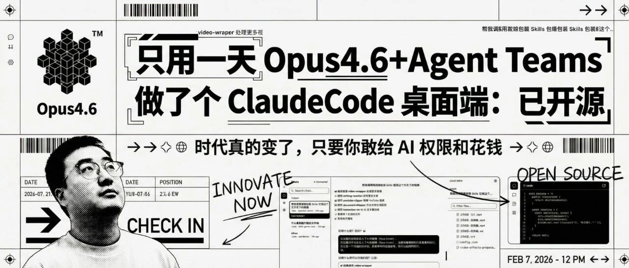只用一天Opus4.6+Agent Teams做了个ClaudeCode桌面端:已开源